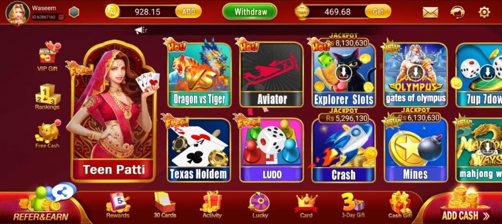 Variety of Games: Enjoy card games, slots, and mini-games.